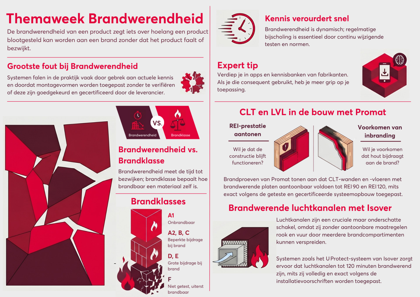 Tijdens onze themaweek Brandwerendheid stond kennisdeling centraal. We onderstreepten dat brandveiligheid geen optelsom is van details, maar een zelfstandig vakgebied waarin kennis, keuzes en uitvoering samenkomen. De belangrijkste inzichten uit de week hebben we samengebracht in vier heldere lessen.